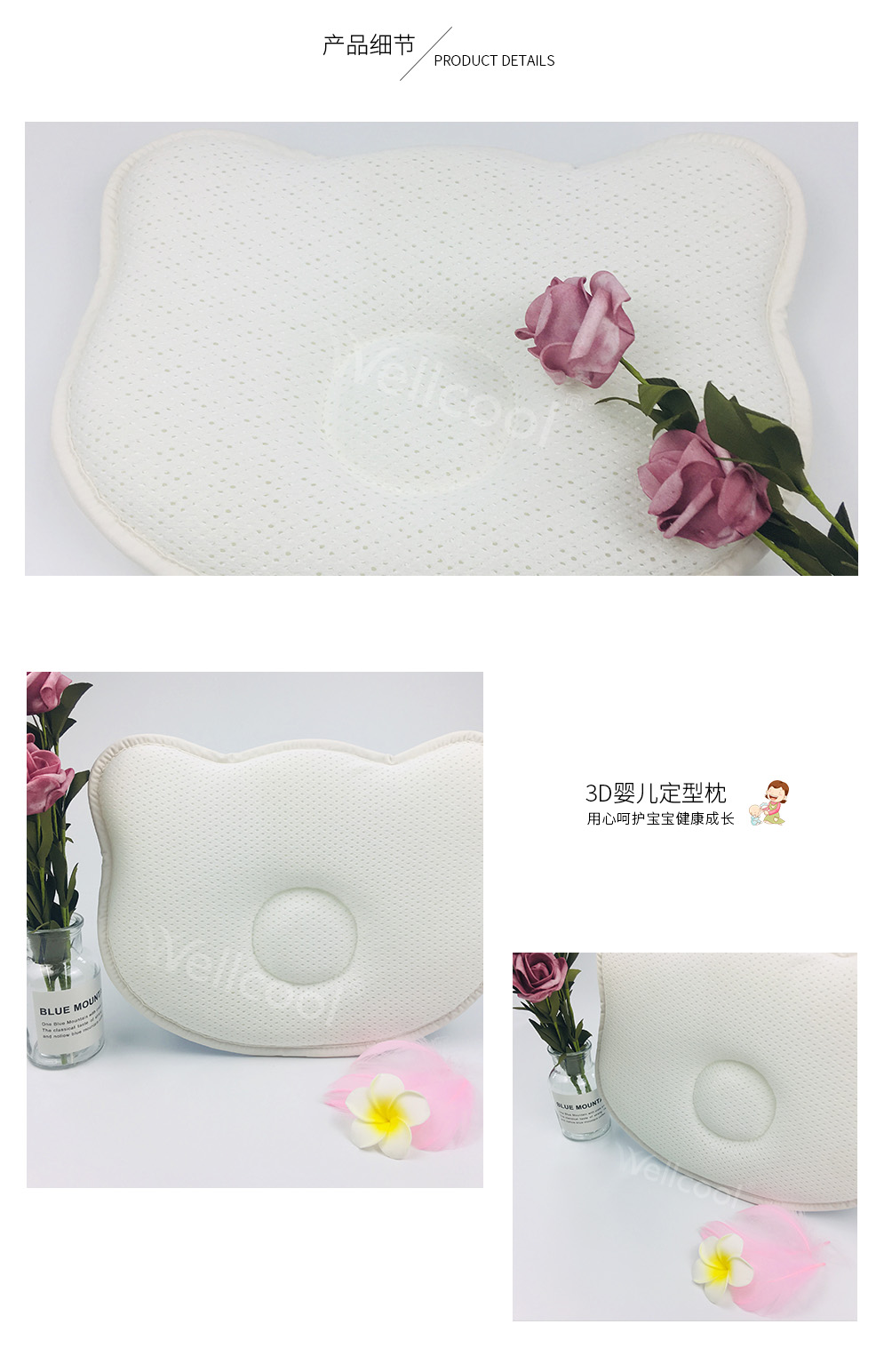 品名:環(huán)保舒適的3d嬰兒定型枕 |