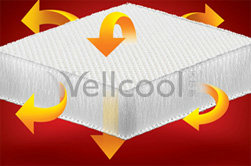 特殊的中空立體結(jié)構(gòu),使得材料六面透氣,每秒每平米面積有4800L的氣體流過(guò)。